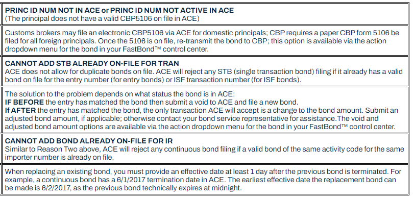 The following information reveals some of the most common reasons why eBonds are rejected by CBP and solutions on how these issues can be resolved.